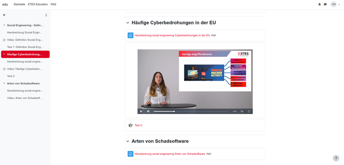 ETES Education ist eine E-Learning Schulungsplattform, die speziell darauf ausgelegt ist, Ihnen umfassende Schulungen im Bereich Datenschutz und Informationssicherheit anzubieten. Unsere vielfältigen Kursmodule decken eine breite Palette an Themengebieten ab, sodass Sie alle wichtigen Grundlagen effektiv erlernen können. Dank der flexiblen Nutzungsmöglichkeiten können Sie unsere Schulungen von jedem Gerät aus absolvieren – ob Computer, Tablet oder Smartphone. Dies ermöglicht Ihnen ein orts- und zeitunabhängiges Lernen, das sich nahtlos in Ihren Alltag integrieren lässt. ETES Education wird in unserem eigenen Rechenzentrum gehostet und ist als "Software Hosted in Germany" zertifiziert.