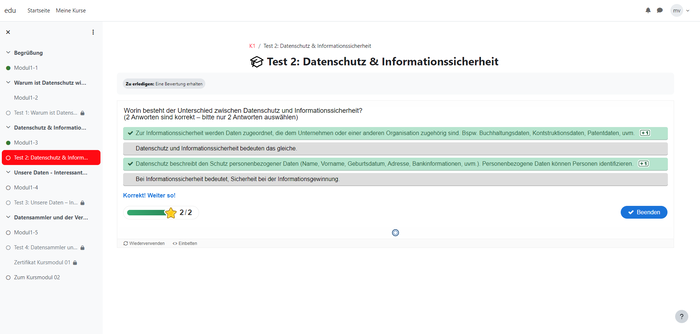 - Zertifikat nach Durchführung der Schulung und abschließendem Test