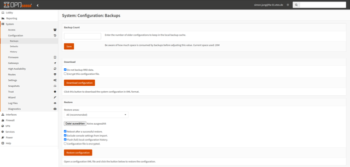 Bei OPNsense-Firewalls gibt es für das Backup der Firewall-Konfiguration unterschiedliche Möglichkeiten: