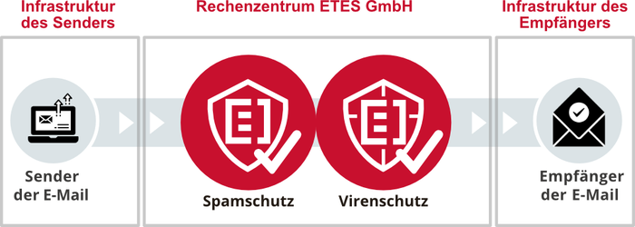 Der Schutz vor Schadsoftware durch Spamnachrichten erfolgt durch mehrere Überprüfungsstufen: